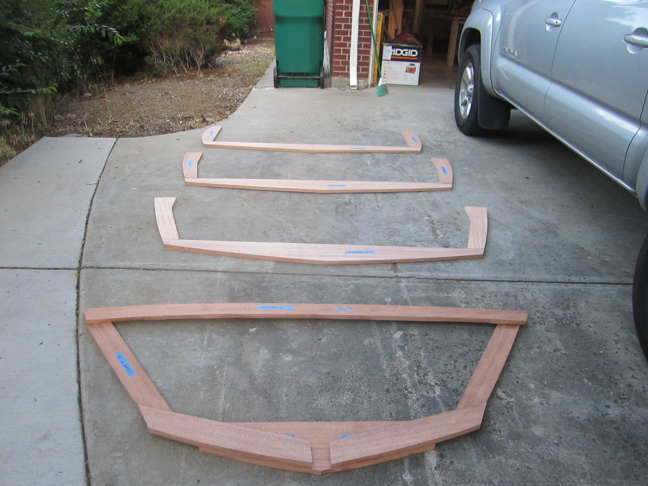 What happens when you tell your gf that you’re gonna build a boat? “Okay..” then she looks away. When you start getting the lumber to build it, she then says “So, you’re really goin through with it?” Yep. When a man wants to build a boat, then a man will build a boat. 10 days later, approx 60 hours of buying materials, transferring patterns, measuring lines and angles, cutting, sanding/planing, I finally have the 4 frames that the boat will be built on. Next is the transom and stem cut-outs, epoxying the gussets onto each of the frames, and then epoxy sealant for everything. Going to take a break for a few weeks to get back to studying full time and getting ready for the comp exam for PT school. It’s a good time to take a break as the next step requires marine plywood to form the gussets, laminates and stem. Marine plywood is a mythological material here in Colorado. Being landlocked and far from the coast or significant body of water, none of the lumber yards or suppliers here have marine plywood in stock for the amateur boatbuilder. It’ll probably be early September when I get the marine plywood and epoxy, and late September when I start constructing the building form to rest the frames. Everything in it’s time and place.