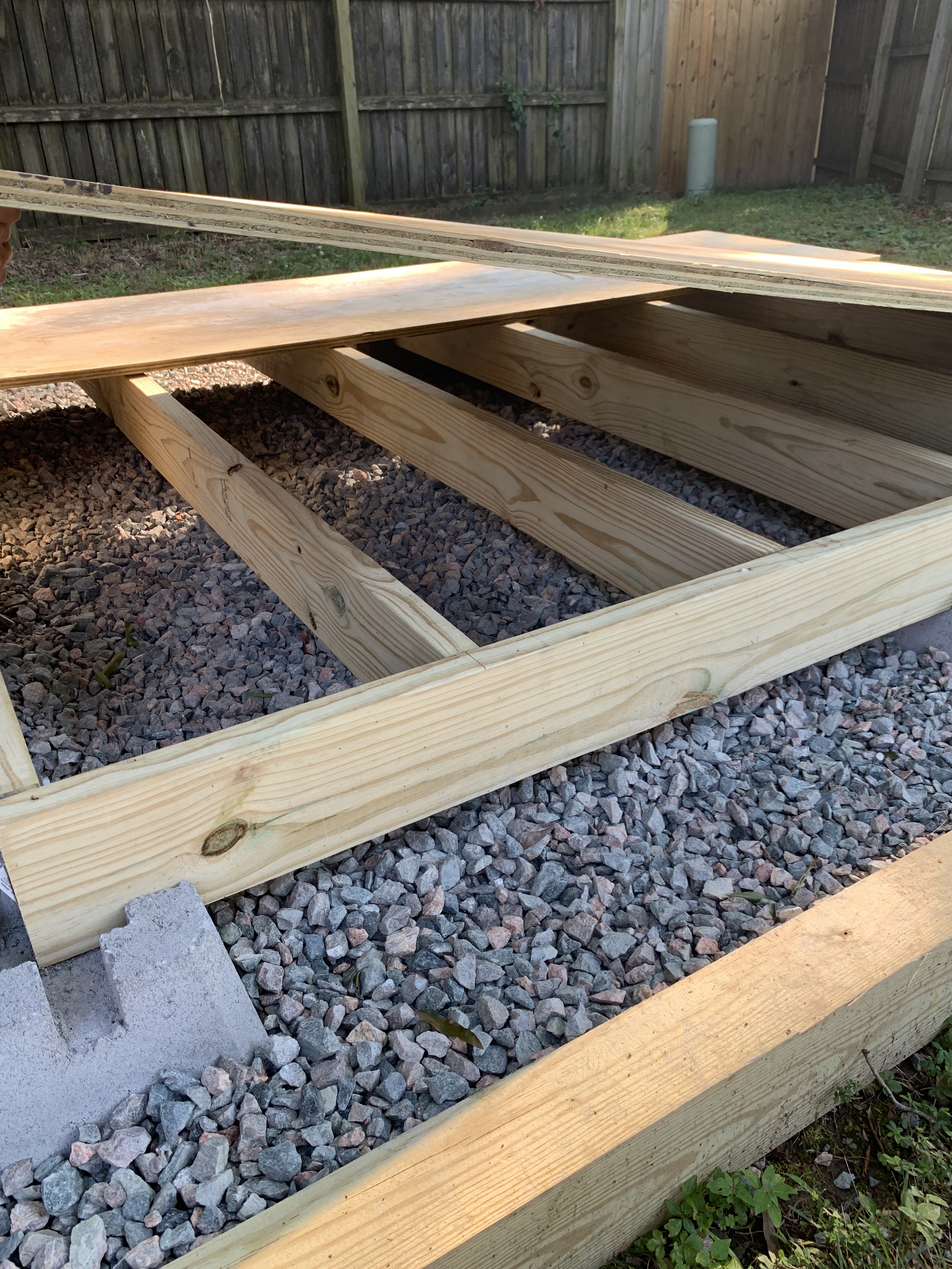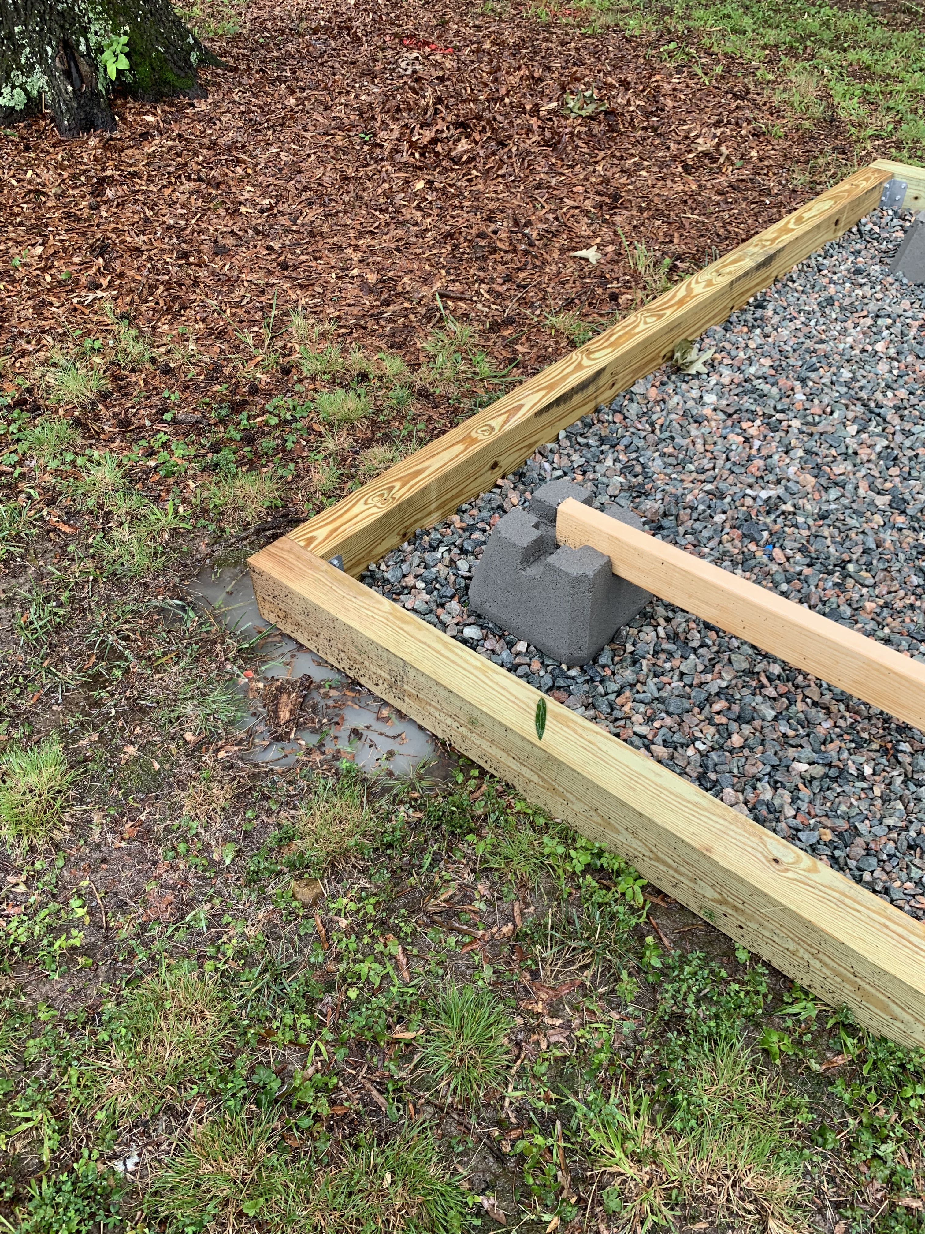 - Build a gravel base around the deck blocks to ensure minimal movement