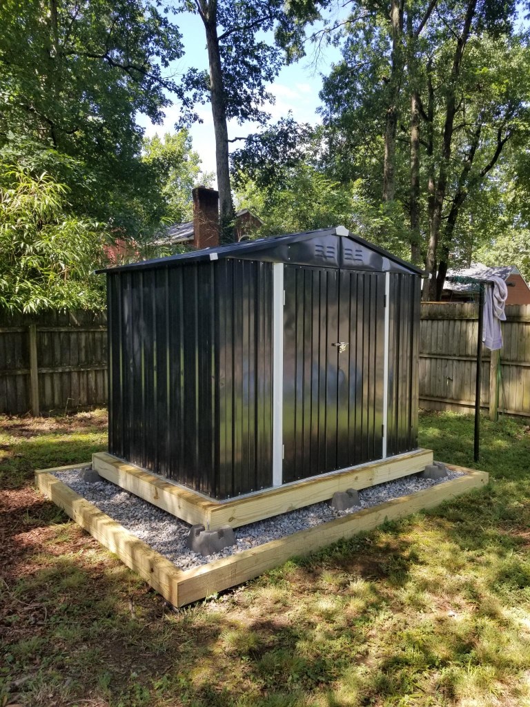 Well, since this is a prefab shed, there really is no suspense. Follow the instructions to complete. I’m thinking that in the future, I may build an 8×10 shed in this foundation frame if I need more space.